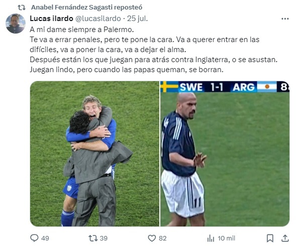 Pero todavía hay hinchas que continúan agrediendo al titular de Estudiantes, y en la previa al clásico de La Plata se conoció un inesperado reposteo de la senadora nacional Anabel Fernández Sagasti chicaneando a Verón.