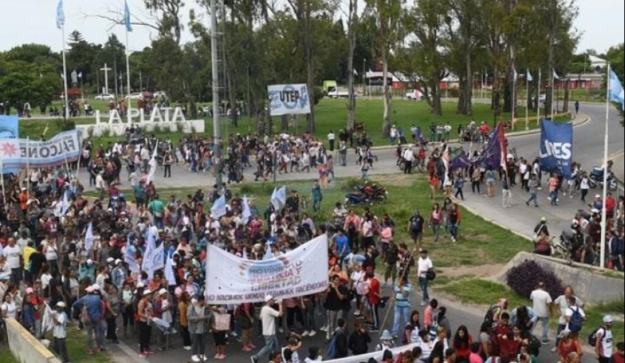 Distintas organizaciones sociales, entre ellas la Unión de Trabajadores y Trabajadoras de la Economía Popular (UTEP), lleva a cabo este viernes una movilización, con corte incluido, en la intersección de las calles 120 y 32 de La Plata.