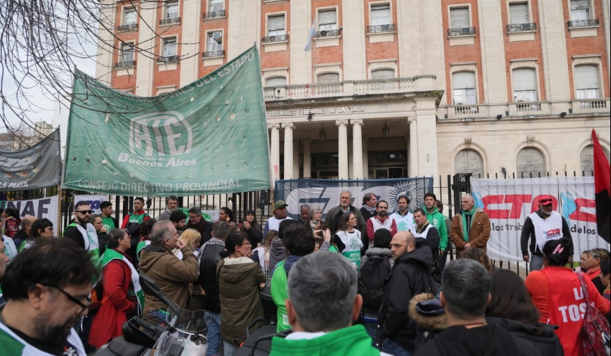 En el acto previo a la presentación judicial estuvieron presentes Daniel Catalano, secretario Adjunto de la CTA Nación y María Reigada, también de CTA Nación, referentes de la CTA Autónoma, del Consejo Directivo Provincial de ATE, la Corriente Nuestra Patria y ortas organizaciones.