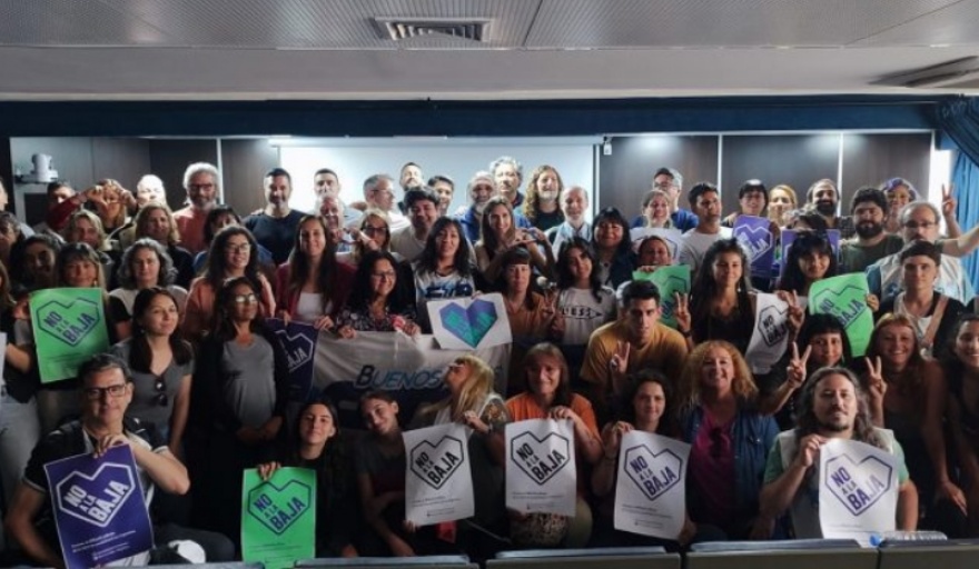 Dirigentes de las dos CTA, el Foro por la Niñez, la Unión de Estudiantes Secundarios y la Federación de Estudiantes Secundarios encabezaron este martes en La Plata una conferencia de prensa para presentar el documento "No a la baja. Por más derechos y menos encierro", a propósito presentado tiempo atrás por el gobierno nacional para bajar la edad de imputabilidad a los 13 años.