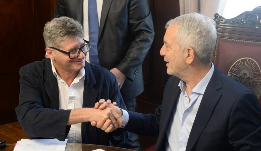 El Intendente de La Plata, Julio Alak, y el presidente del Consejo Escolar, Iván Maidana, firmaron un convenio para que el municipio destine parte del Fondo de Financiamiento Educativo a la realización de nuevas obras en escuelas de la ciudad.