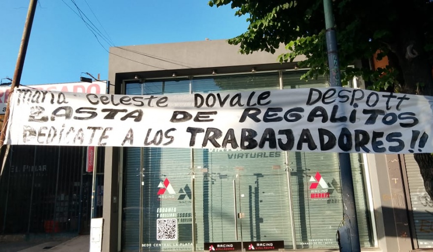 "María Celeste Dovale Despott basta de regalitos, dedicate a los trabajadores", piden quienes colgaron los pasacalles.