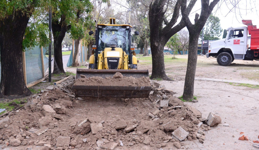En la Plaza de la Madre ya ejecutaron las primeras tareas de demolición de estructuras y de remoción de juegos y luminarias, además del desmonte del Monumento a la Madre. También levantaron el contrapiso y avanzaron con la limpieza general del predio como parte de los trabajos preliminares que permitirán iniciar la obra estructural.