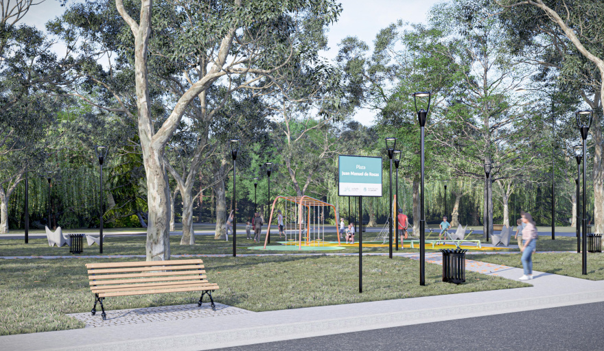 Además, incluye el emplazamiento de juegos infantiles, sectores de estar y descanso con mobiliario urbano, la traza de senderos y nueva iluminación con tecnología LED.