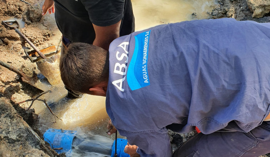 La empresa Aguas Bonaerenses SA (ABSA) trabaja este jueves en la reparación de una rotura en la red de agua provocada por terceros, en la intersección de las calles 4 y 42, de Villa Elisa.