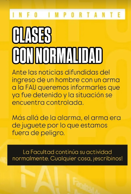 Debido al incidente, las clases en la unidad académica se vieron interrumpidas. No obstante, ya volvieron a seguir su curso y no fue necesario evacuar la facultad ni suspender las cursadas del día de la tarde.