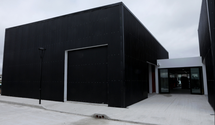 El edificio tiene 1100 metros cuadrados e incluye un acceso principal, playa de maniobras para vehículos de gran porte y dos naves industriales (una sucia y otra limpia), con sus respectivos pañoles de trabajo.