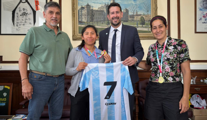 El presidente del Concejo Deliberante de La Plata, Marcelo Galland, y el subsecretario de Deporte municipal, Ángel Cerisola, recibieron este jueves a Julieta María Martín y Sandra Llanaje, integrantes de la Selección Argentina femenina de fútbol para ciegas, Las Murciélagas, que se consagraron campeonas del Mundial Kochi India 2025.