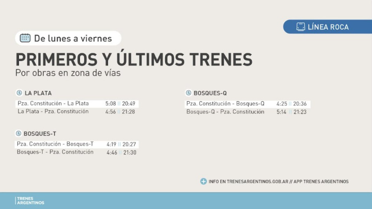 Según informó la empresa Trenes Argentinos, de lunes a viernes los trenes de los ramales La Plata, Bosques vía Quilmes y vía Temperley circulan con modificaciones.