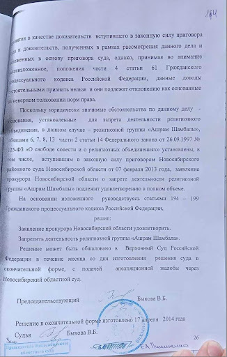 DOCUMENTO: Sentencia judicial que prohíbe el "Ashram de Shambala"