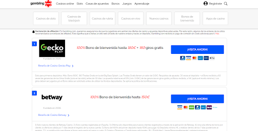 Después de muchos años de valorar los más reconocidos casinos en línea de España, Gambling.com solo recomienda plataformas con una licencia oficial de la Dirección General de Ordenación del Juego (DGOJ). Sus análisis son minuciosamente revisados por expertos antes de ser publicados y, además, hacen las correspondientes actualizaciones para garantizar que la información que publican sea precisa. Valoran las áreas más relevantes como son la seguridad, la variedad de juegos, la atención al cliente y los métodos de pago.