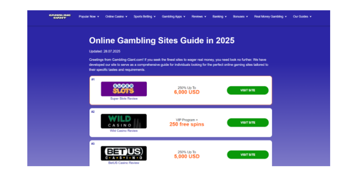 Lo que permite que Gambling-giant.com sea diferente a los demás es su dedicación a la imparcialidad y a la actualización inflexible. Realizar pruebas reales (de todo: depósitos, retiros; incluso verificando que el bono se reciba también) sirve para comprobar si las ofertas que muestra Gambling-giant.com son reales.