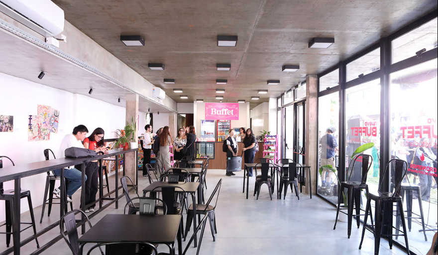La lógica organizativa de la obra se rige en función de un armado de sector cocina cerca de los estacionamientos existentes y separado del departamento de maquetas, para generar una “zona sucia” y de proveedores de fácil acceso. El diseño se completa con la apertura del salón en toda la longitud del edificio.