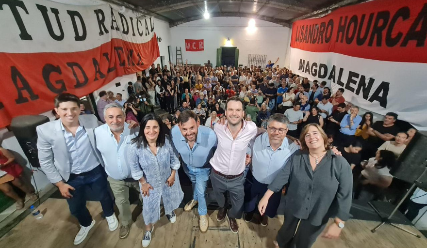 El intendente y candidato a diputado nacional Lisandro Hourcade, encabezó el acto de cierre de campaña en Magdalena, acompañado por Juan Manuel López y Elsa Llenderrozas, referentes nacionales de la Coalición Cívica (CC) y la Unión Cívica Radical (UCR).