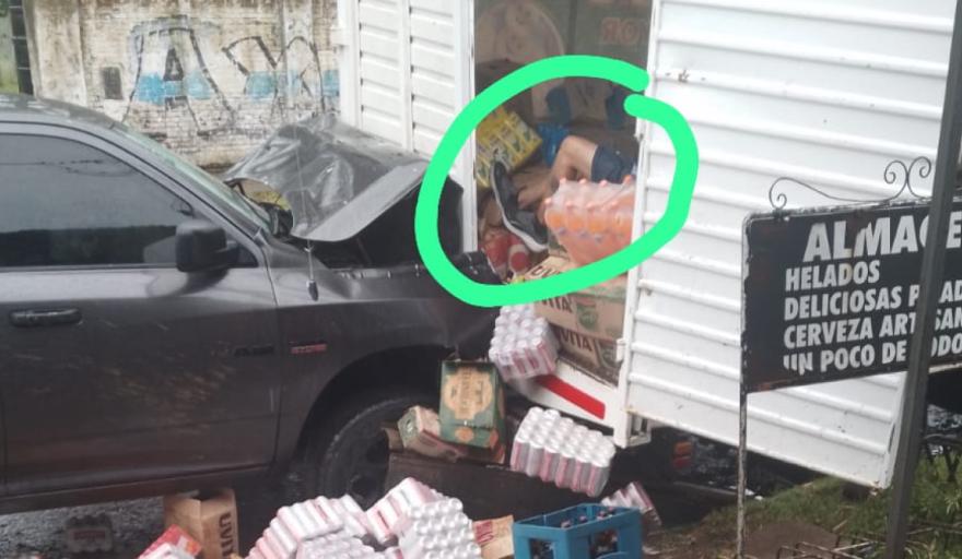 Según testigos que estaban en el lugar, Medina se desplazaba en una camioneta RAM y conducía bajo los efectos del alcohol o de estupefacientes, y narraron que viajaba con otra persona. También relataron que el vehículo impactó de frente contra un camión que transportaba mercadería con un empleado a bordo, lo que provocó daños materiales de consideración y puso en riesgo al trabajador, como se ve en la imagen que acompaña este nota.