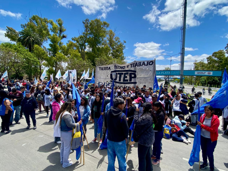 Organizaciones sociales volvieron a salir a las calles en La Plata y todo el país para reclamar alimentos, que continúe el salario social complementario y que el gobierno nacional otorgue a los desempleados un bono de fin de año.