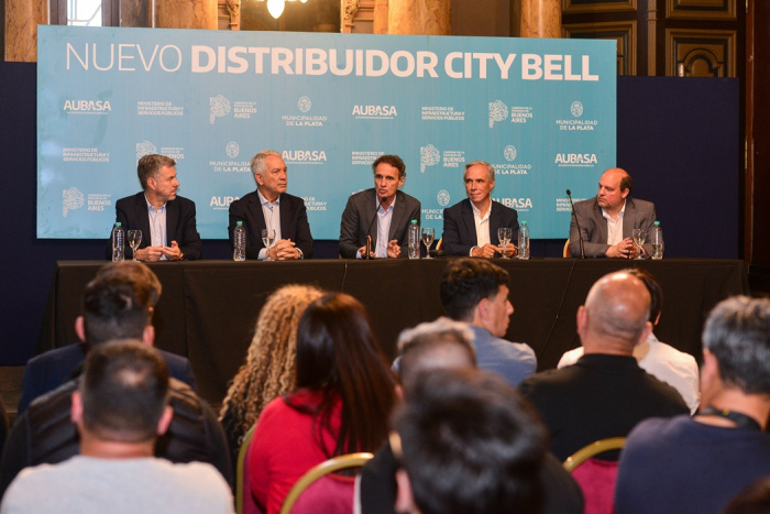 El ministro de Infraestructura y Servicios Públicos de la Provincia de Buenos Aires, Gabriel Katopodis, junto al intendente de La Plata, Julio Alak, y el presidente de AUBASA, José Arteaga, encabezó este lunes la licitación de las obras viales para la construcción del nuevo acceso a City Bell desde la Autopista Buenos Aires-La Plata.