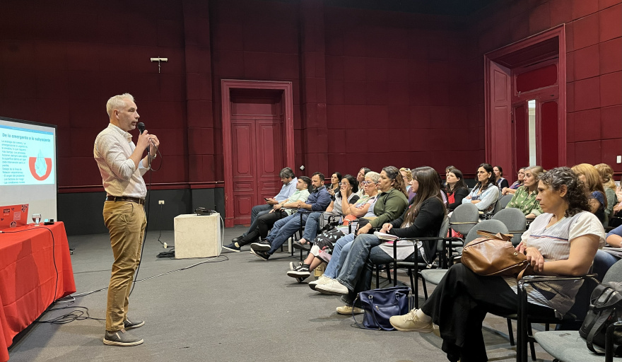 Por un lado, se desarrolló una jornada destinada a equipos directivos de establecimientos de nivel inicial municipal que sentó las bases para la implementación, en 2026, de un programa innovador de prevención temprana que trabajará con niños y niñas desde los tres años y con las familias en los distintos ámbitos educativos.
