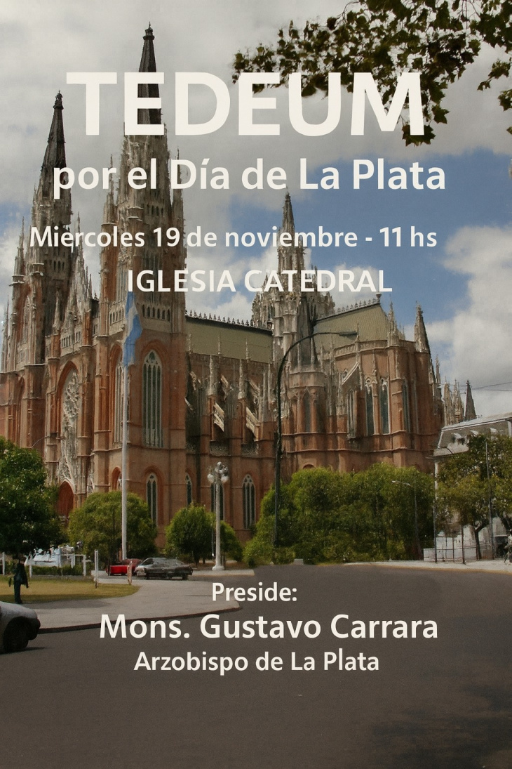 El Arzobispo de La Plata, Monseñor Gustavo Carrara, encabezará este miércoles 19 de noviembre, a las 11 horas, en la Catedral el Tedeum por el 143° aniversario de la ciudad.