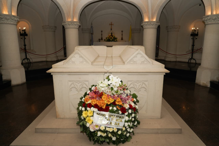 Posteriormente, el jefe comunal, las autoridades presentes y el Arzobispo entregaron una ofrenda floral en el mausoleo donde descansan los restos del exgobernador y fundador de la capital bonaerense, Dardo Rocha.