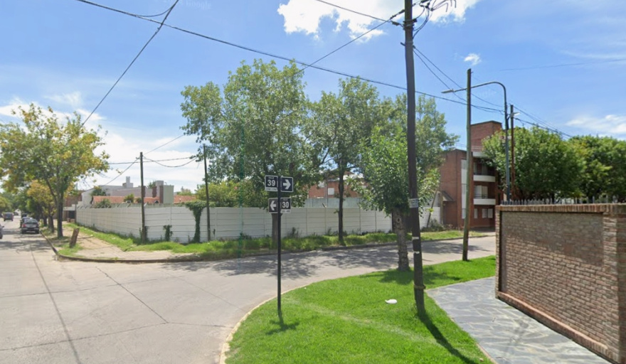 Uno de los inmuebles está en la esquina de 30 y 39. Es un terreno de 1.200 metros cuadrados, sin construcciones y rodeado por un muro perimetral. Tiene vegetación y malezas, y su precio base es de 238.991,60 miles de dólares.