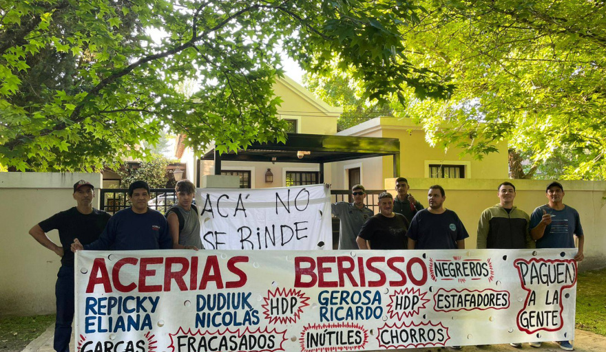 Los trabajadores de Acerías Berisso SA se presentaron este jueves por la mañana en la casa de Nicolás Dudiuk, uno de los dueños de la compañía que el 23 de octubre pasado cerró sus puertas y no las volvió a abrir hasta la actualidad, dejando a 50 empleados en la calle.