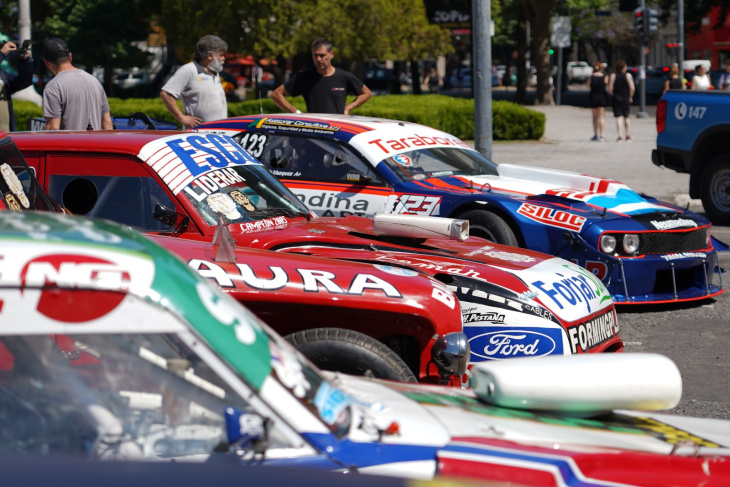A continuación, Alak, Mazzacane y los pilotos se acercaron a la dársena de estacionamiento de Plaza Moreno, donde recorrieron una exhibición de seis autos del Turismo Carretera de todas las épocas, abierta al público y transmitida en vivo por el canal de YouTube de la ACTC.