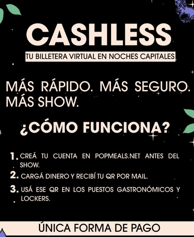 Según se informó, el espectáculo está anunciado para las 21 horas y las puertas abrirán a las 19 horas. Además, desde la organización piden a los asistentes que tengan la aplicación Cashless, única forma de pago durante el show.