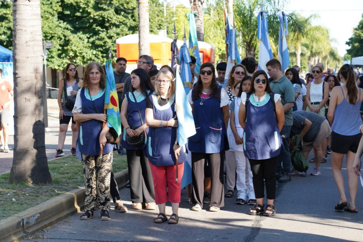 A continuación, se llevó adelante el desfile cívico y tradicionalista con la participación de jardines, escuelas, instituciones de Tolosa y trabajadores de la delegación comunal de la localidad y el acompañamiento de la banda de la Policía Bonaerense interpretando Mi Bandera.