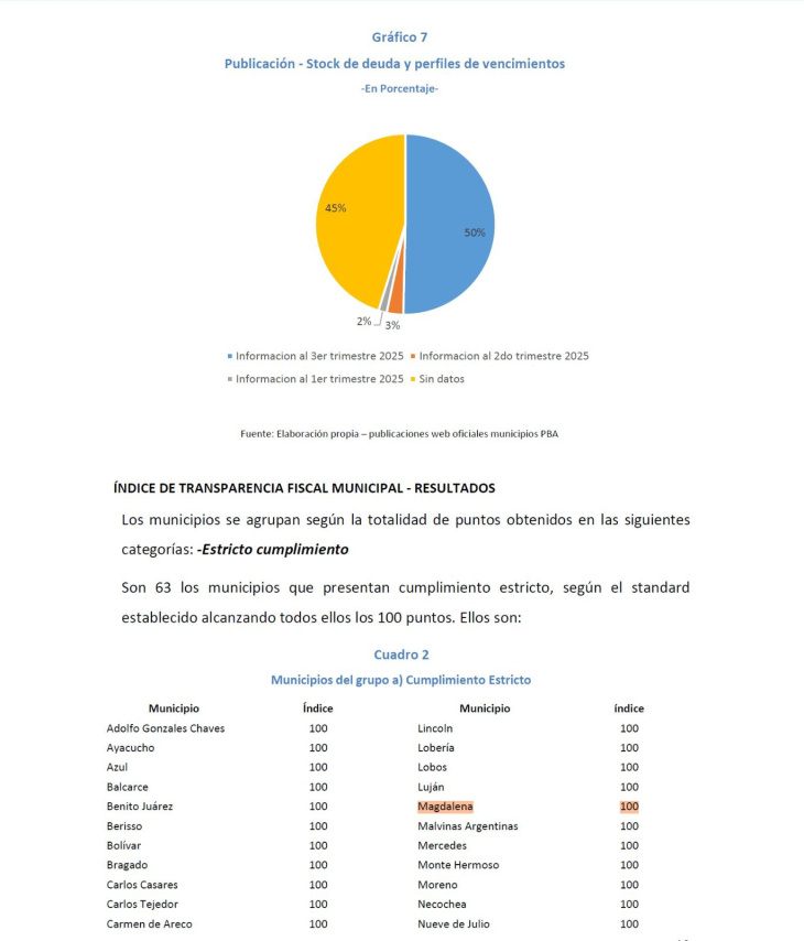 "Este resultado posiciona a Magdalena entre los municipios de la provincia de Buenos Aires que lideran en transparencia fiscal, reafirmando el compromiso de la gestión con los principios de gobierno abierto, accesibilidad de datos y calidad institucional", destacaron desde la gestión local.