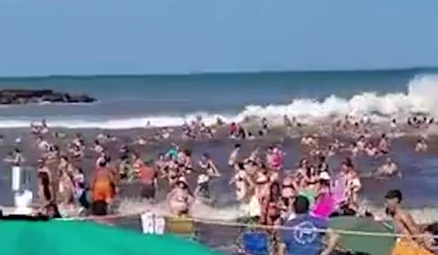 En los videos que circulan en redes sociales se puede ver cómo la ola sorprendió a una gran cantidad de turistas en la playa.