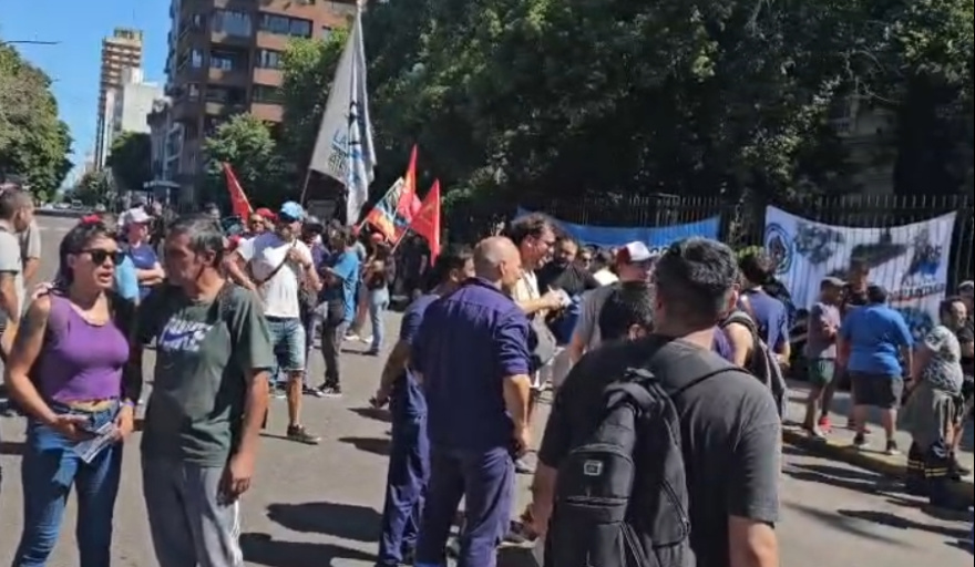 Trabajadores de Astillero Río Santiago (ARS) se manifiestan este miércoles frente a la Casa de Gobierno de La Plata en contra de la propuesta de aumento salarial de tres por ciento.