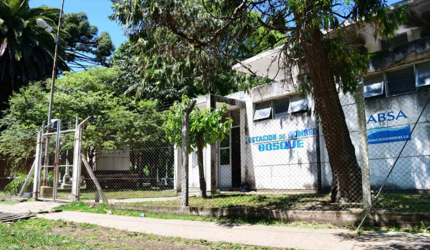 Operarios de la empresa Aguas Bonaerenses SA (ABSA) llevan adelante este miércoles trabajos de mantenimiento en la Estación Elevadora de Agua Bosque, de La Plata.