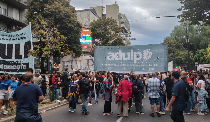 El Frente Gremial Universitario de La Plata, integrado por ADULP, ATULP y FULP, convocó a miles de estudiantes, docentes y nodocentes para reclamar que el gobierno nacional "que se cumpla la Ley de Financiamiento Universitario, aprobada, vetada por Milei y aprobada nuevamente, y que el Poder Judicial ordenó que se aplique", explicó la dirigente de la Juventud Universitaria Peronista (JUP) y presidenta de la Federación Universitaria de La Plata (FULP), Sol Alconada.