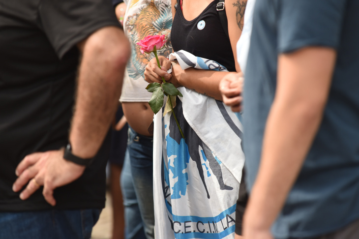 En primer lugar, Carrizo leyó un documento elaborado por el CECIM y expresó: "para nosotros, los ex soldados, este acto no se trata de un homenaje más: pasaron 44 años de una guerra insensata, de dolores que perduran y siguen anclados en la memoria individual y colectiva".