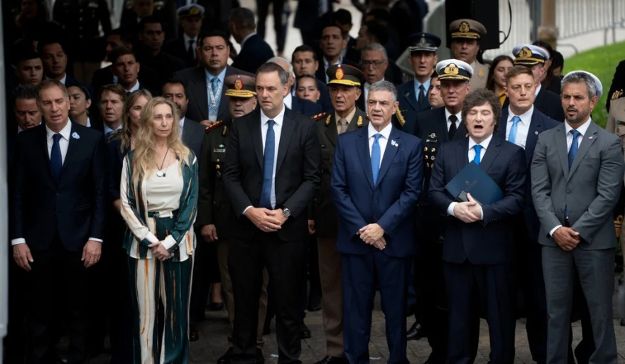 En el acto que se llevó a cabo en la Plaza San Martín del barrio porteño de Retiro, también estuvieron presentes los ministros Manuel Adorni (Gabinete), Luis Caputo (Economía), Pablo Quirno (Exterior y Culto), Diego Santilli (Interior), Alejandra Monteoliva (Seguridad) Federico Sturzenegger (Desregulación), Mario Lugones (Salud) y Juan Bautista Mahiques (Justicia).