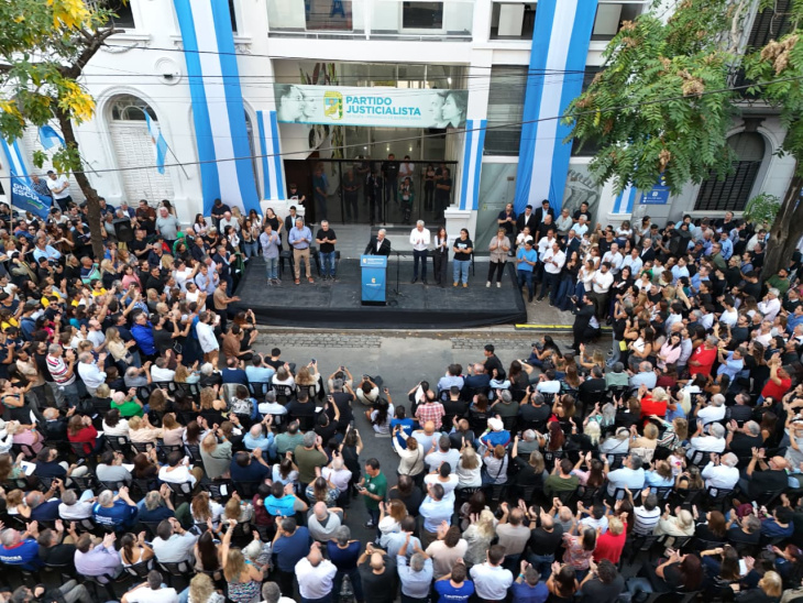 Y continuó: "Queremos que reine el sentido de la unidad. A partir de ello debemos estimular la participación llevando adelante una gran campaña de afiliación. Un partido cercano a todos los barrios con militantes con barro en los zapatos, como decía Perón. Queremos conformar un frente patriótico y un frente bonaerense con todos los partidos aliados que provienen del tronco nacional y popular. Pero primero hay que empezar por casa. El desafío principal es construir una unidad de todo el peronismo, respetando la diversidad. Un partido con una puerta grande y alta para que entre todos y con la frente alta. La primera estrofa de nuestra marcha, el primer mandato, la primera consigna, dice 'todos unidos triunfaremos'. Basta de peleas entre nosotros. No sobra ningún peronista”.