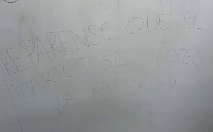 "Prepárense que el martes 5/5 tiroteo en la Facultad", se lee en el escrito que desató la polémica y que motivó el accionar de las autoridades de la unidad académica.