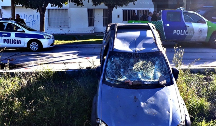 Se veía claramente la camioneta del acusado destrozada por la reacción de la gente. En la puerta de la vivienda donde estaba refugiada la esposa del supuesto depravado había mucha policía. Y en un baldío ubicado a unos 20 metros, había muchos vecinos furiosos.