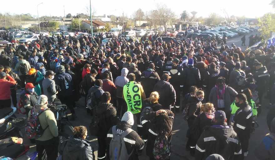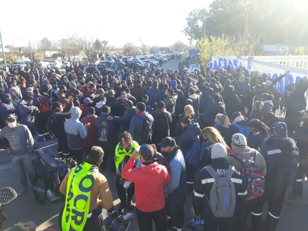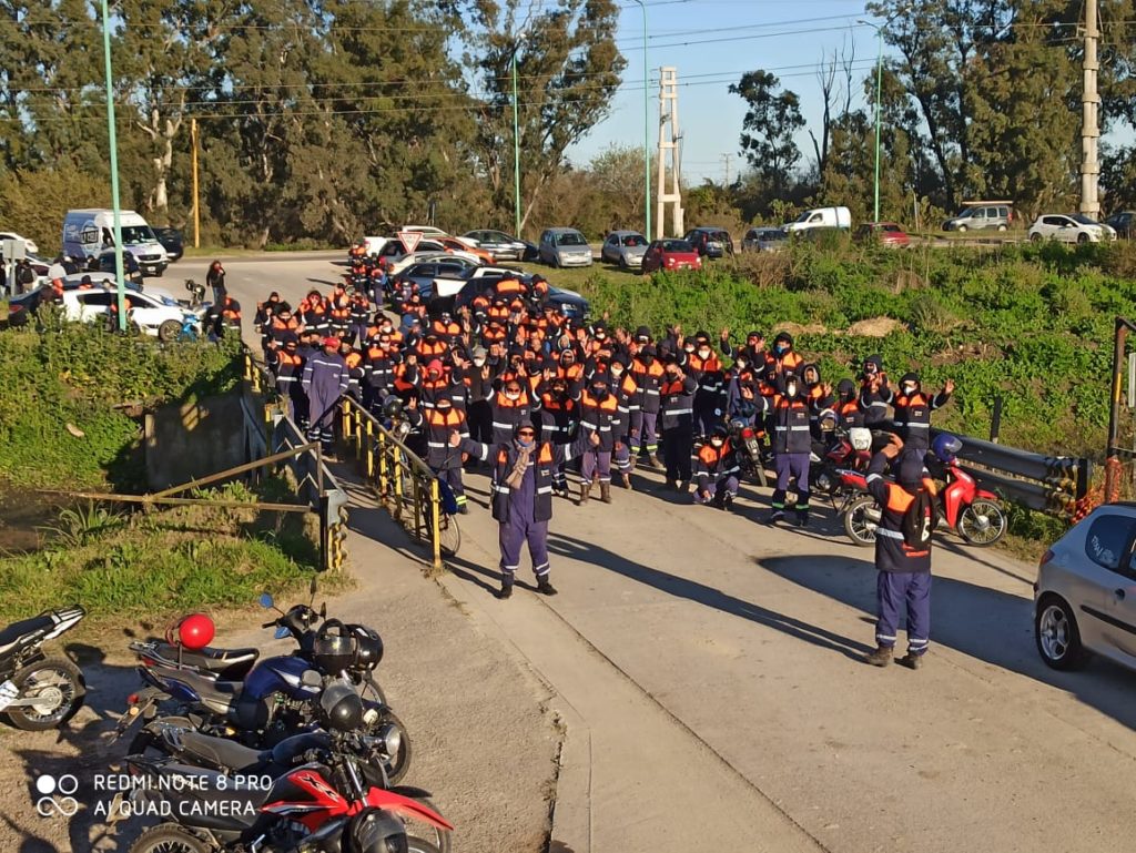 Un nutrido grupo de operarios se manifiesta en las puertas de YPF y la Termoeléctrica de Ensenada. Se trata de una movida organizada por el bando que responde al interventor de la UOCRA, Carlos Vergara, y al secretario general del gremio a nivel nacional, Gerardo Martínez.