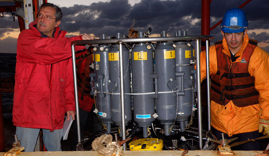 “En 2009 instalamos unos instrumentos acústicos y sensores de presión en el fondo del mar frente a la costa del Uruguay. Todavía mantenemos estos fondeos dentro del marco del proyecto SAMOC (de sus siglas en ingles South Atlantic Meridional Overturning Circulation), una iniciativa de investigación de instituciones de Argentina, Alemania, Brasil, Estados Unidos, Francia y Sudáfrica”, explicó Alberto Piola.