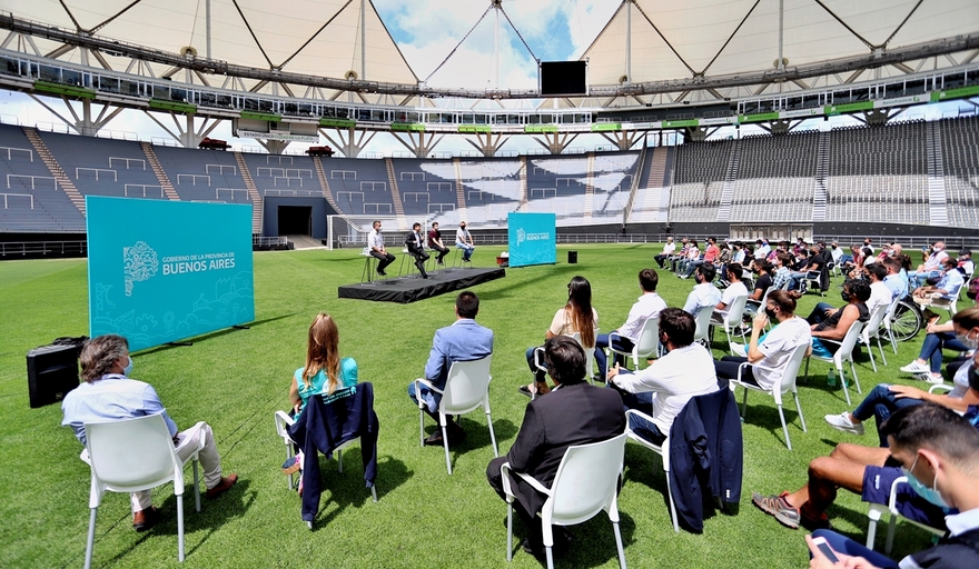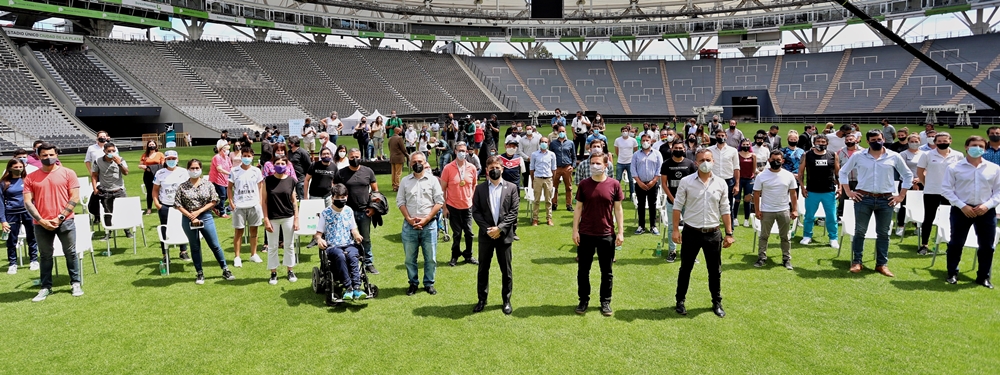 “Entre todos y todas tenemos que construir el camino de la pospandemia. Lo estamos haciendo con un Estado presente y trabajando junto a todos los intendentes y las intendentas de la Provincia”, aseguró Kicillof durante el anuncio, que se desarrolló en el Estadio Único de La Plata.