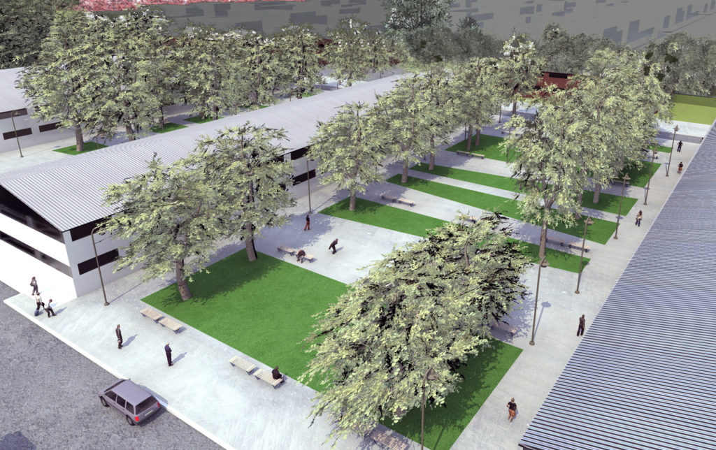 La idea rectora del Plan es consolidar la franja del predio donde se ubican los galpones existentes, replicando una tipología similar de “naves industriales”.