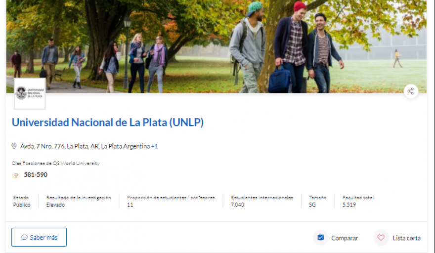 El ranking internacional especializado en educación universitaria realizado por la consultora británica Quacquarelli Symonds (QS) volvió a ubicar a la Universidad Nacional de La Plata como la segunda más importante de la Argentina, al tiempo que se consolida entre las 25 mejores de América Latina.