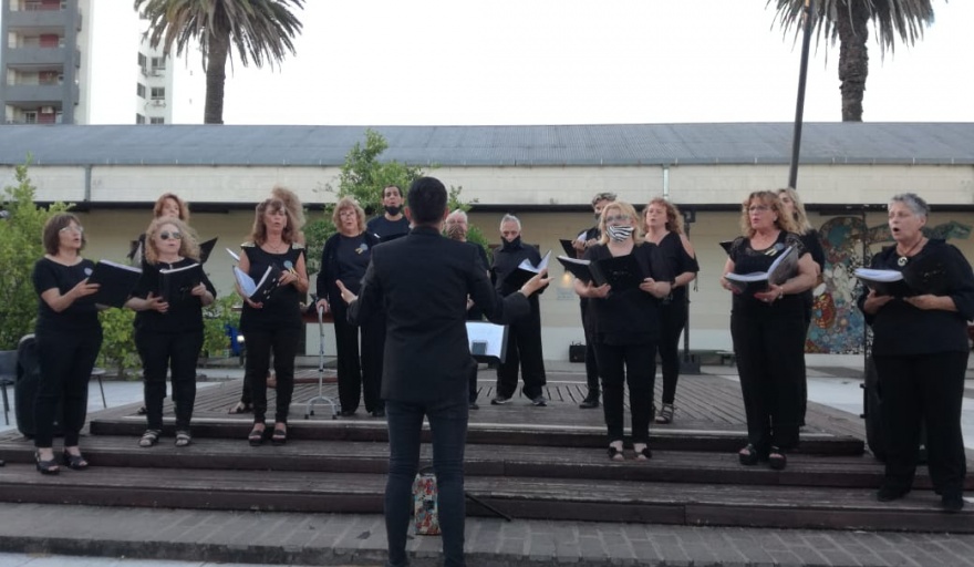 Por su parte, el coro Voces Unidas es la continuidad de un grupo coral que se formó y viene cantando desde 2016 bajo la dirección del maestro Max Ge. En sus comienzos, el coro representaba a una Asociación Italiana y luego, en junio del año 2020, devino en un coro independiente de autogestión.