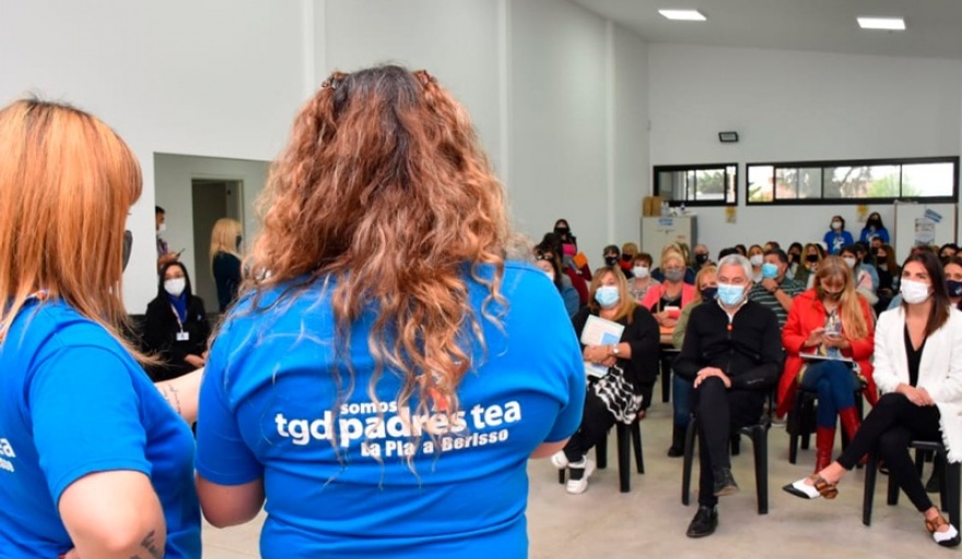 En el encuentro, que tuvo lugar en el SUM de la Comunidad (18 155 y 156), participaron el secretario de Desarrollo Social Lucas Spivak, las directoras de Niñez y Adolescencia y de Mujer, Género y Diversidad; Eugenia Ordichuk y Marina Peñalba, respectivamente y una gran marco de padres y madres de niños y niñas con TEA e integrantes de la comunidad en general.