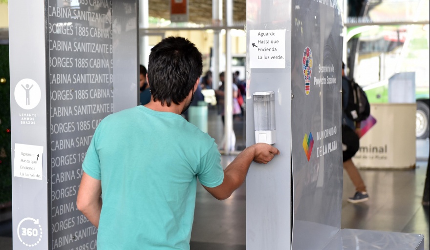 La Comuna dispuso desde el comienzo de la pandemia que el ingreso de los usuarios al predio se realizara por calle 42. Cada uno de los pasajeros debe pasar primeramente por la cabina sanitizante y luego agentes municipales le realizan el control de la temperatura. Si alguno presenta síntomas, es debidamente aislado.