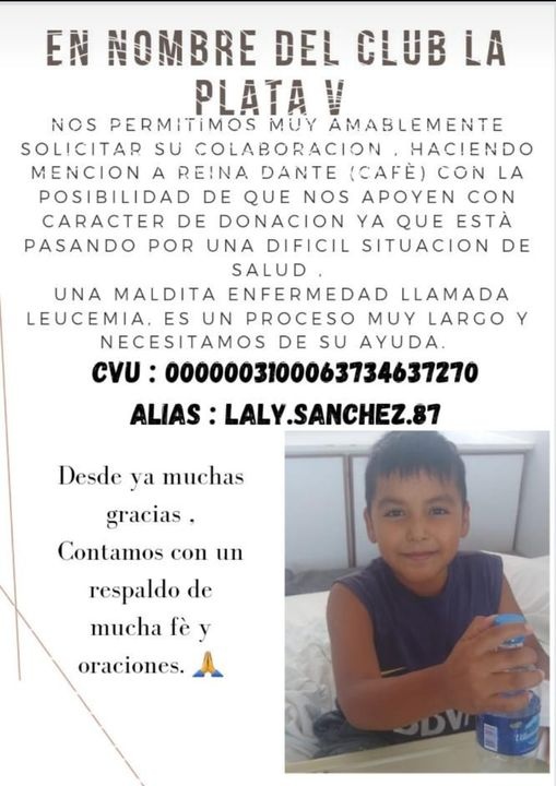 Una familia de La Plata lanzó un pedido a través de las redes sociales para su hijo de diez años Dante Leonel Reyna Sanchez, que sufre leucemia y está internado en el Hospital de Niños de la ciudad.