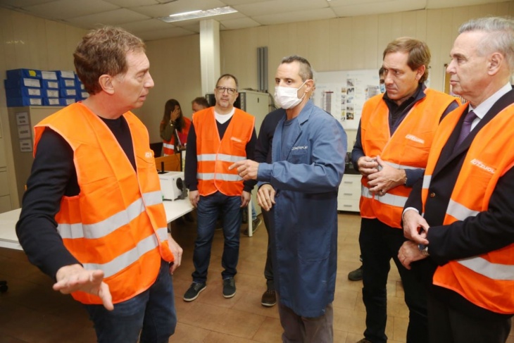 Los dirigentes compartieron una visita a la empresa de moldes de gaseosas "Conteplat", una compañía ubicada en el Parque Industrial I de La Plata, que emplea principalmente a jóvenes egresados de escuelas técnicas.