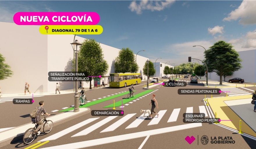 En La Plata comnenzarán los trabajos para crear una nueva ciclovía en diagonal 79 de Av. 1 a calle 6 para "seguir sumando kilómetros a la extensa red de bicisendas", se informó.